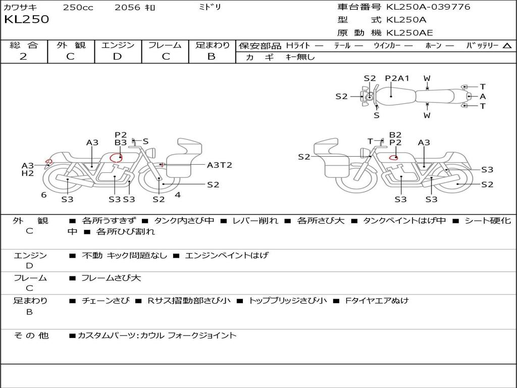 | Номер рамы / VIN | KL250A-039776 |