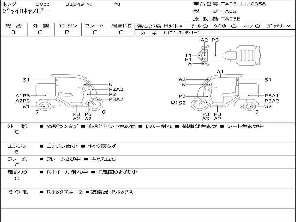 | Номер рамы / VIN | TA03-1110958 |