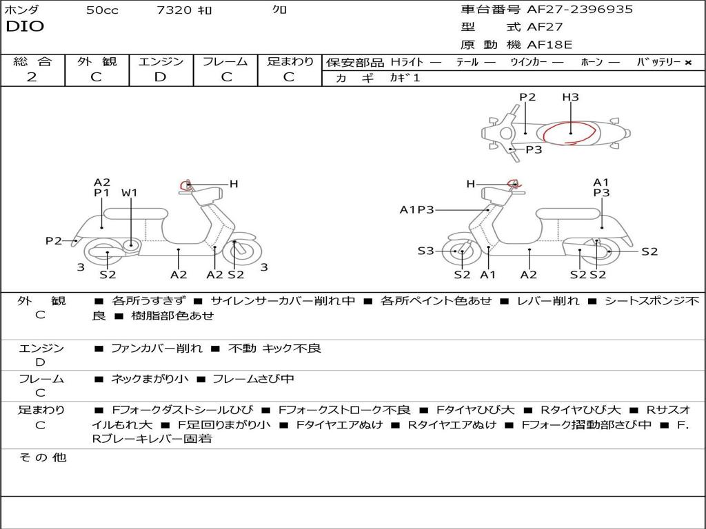 | Номер рамы / VIN | AF27-2396935 |