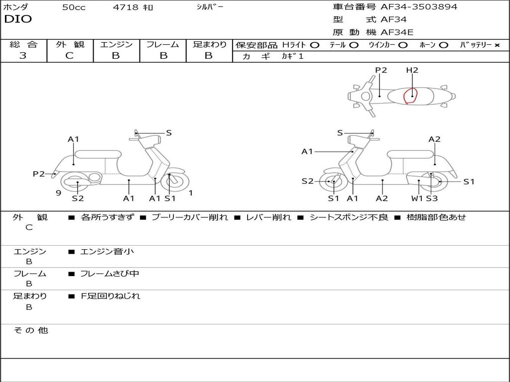 | Номер рамы / VIN | AF34-3503894 |