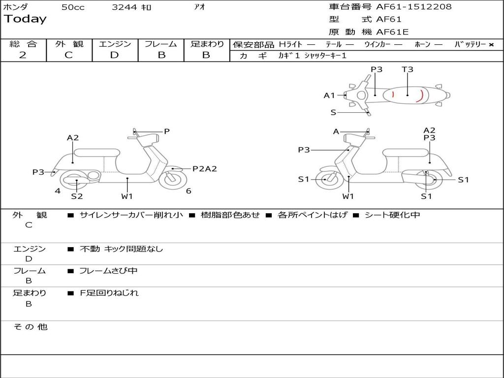| Номер рамы / VIN | AF61-1512208 |