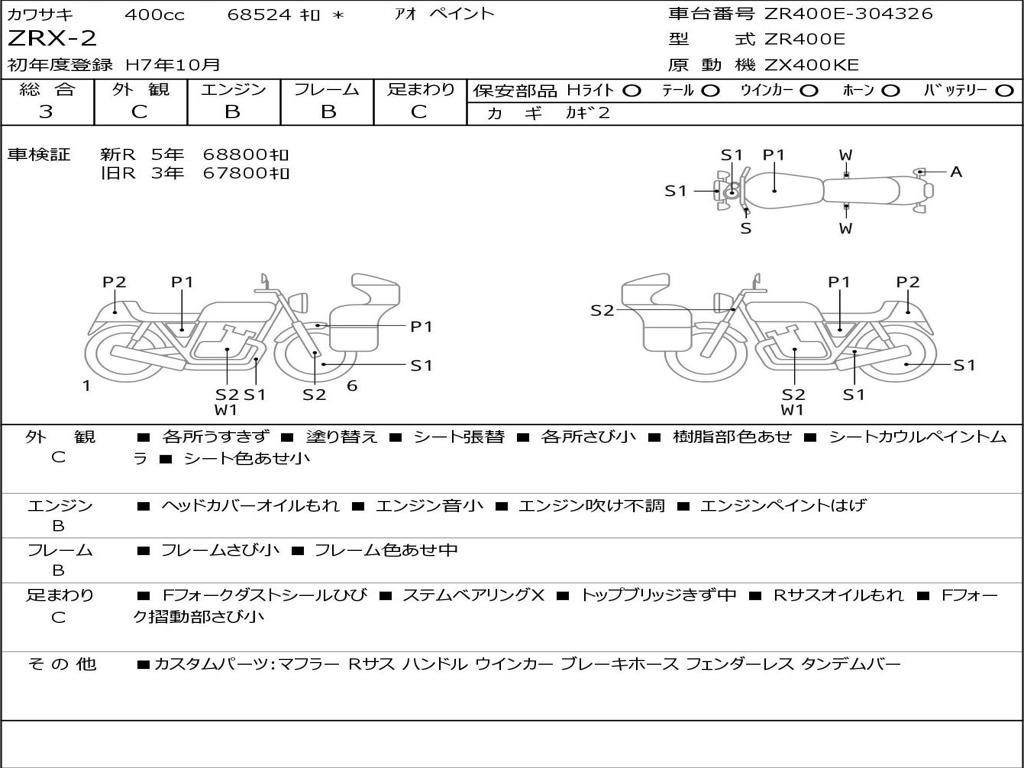 | Номер рамы / VIN | ZR400E-304326 |