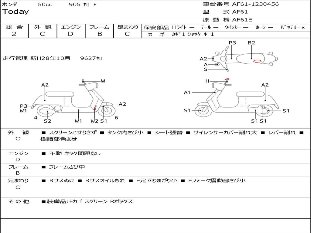 | Номер рамы / VIN | AF61-1230456 |