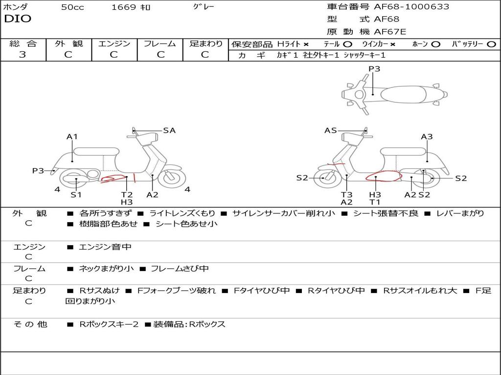 | Номер рамы / VIN | AF68-1000633 |