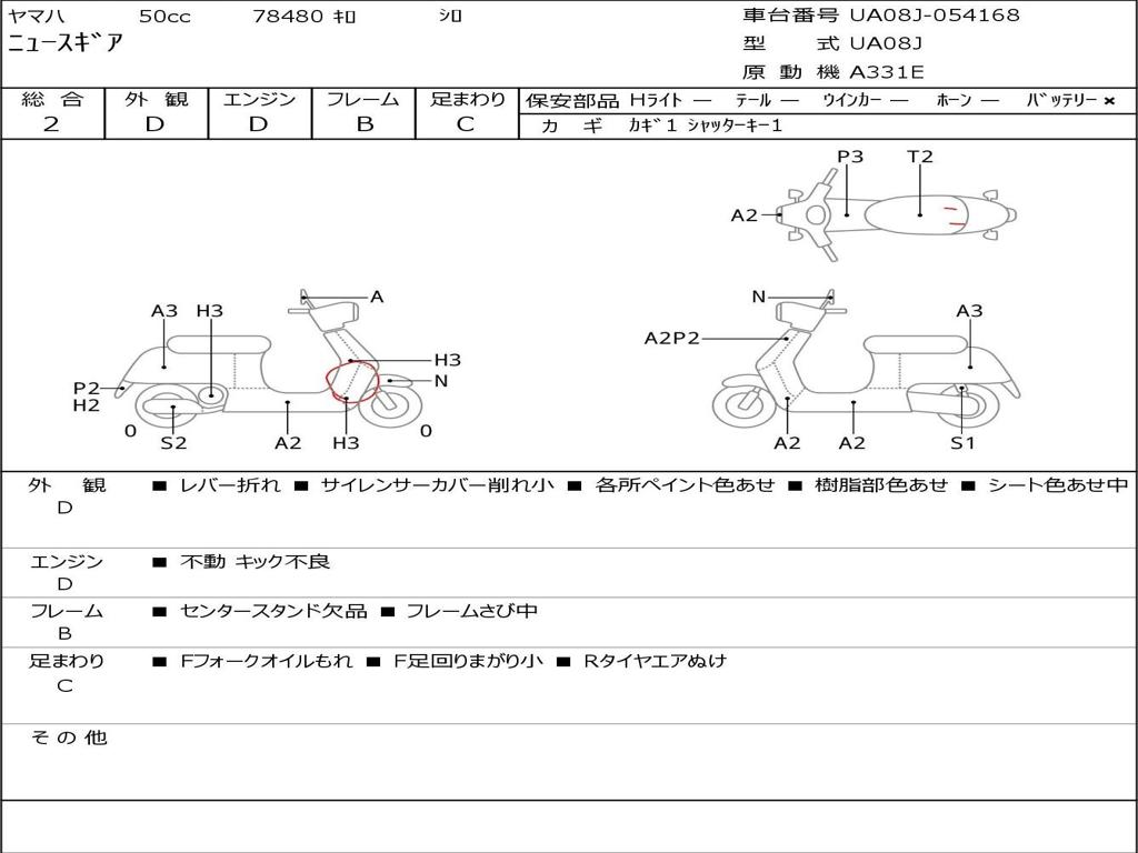 | Номер рамы / VIN | UA08J-054168 |