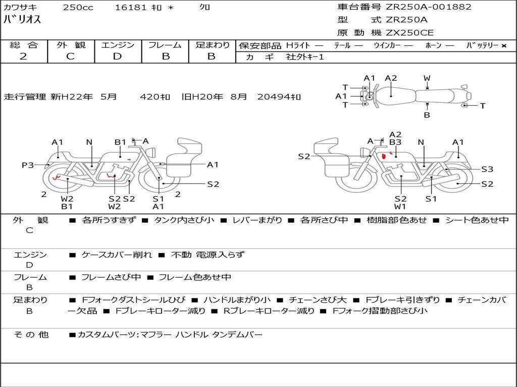 | Номер рамы / VIN | ZR250A-001882 |