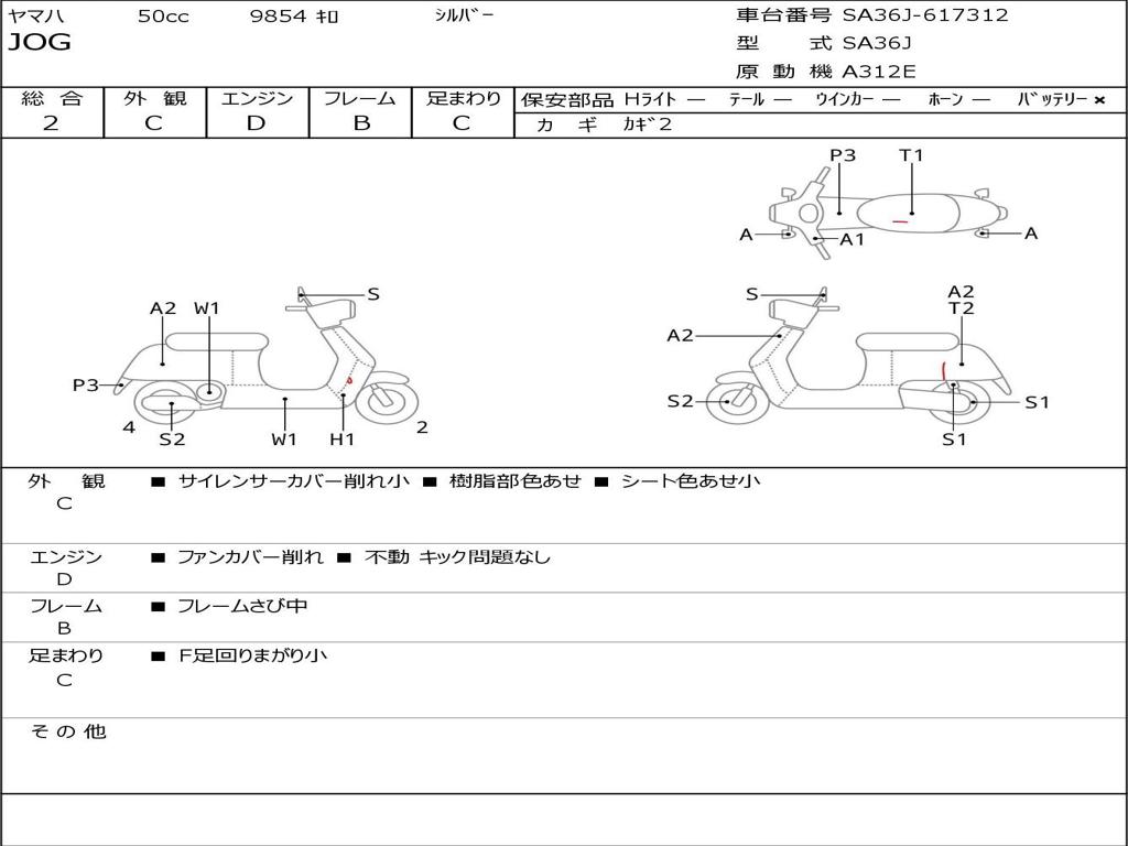| Номер рамы / VIN | SA36J-617312 |