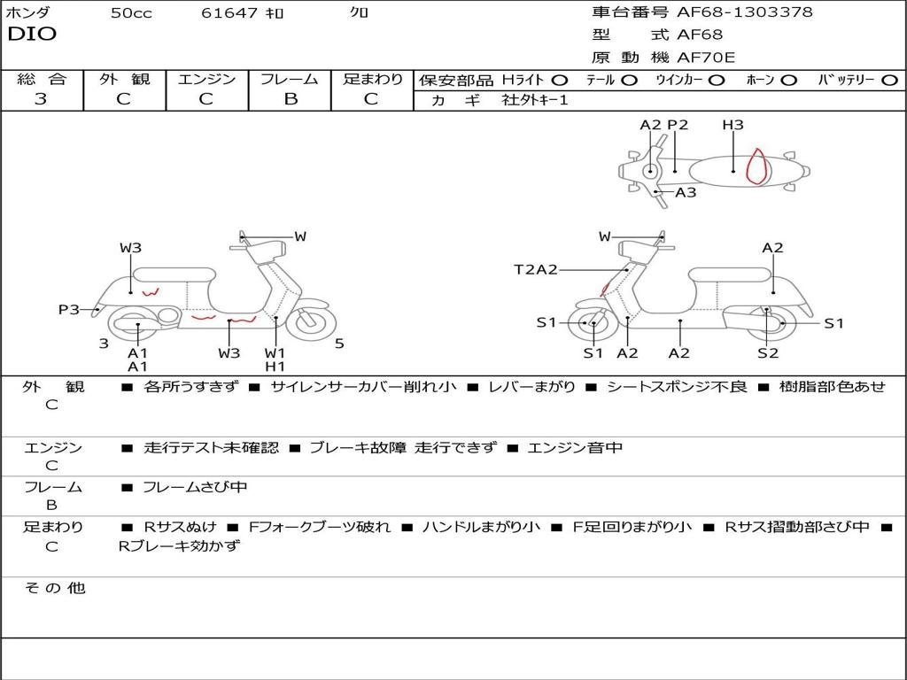 | Номер рамы / VIN | AF68-1303378 |