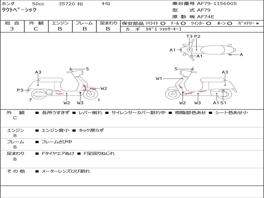 | Номер рамы / VIN | AF79-1156005 |