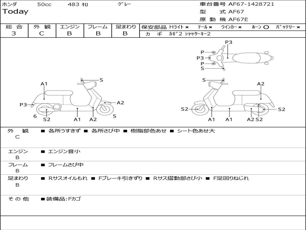 | Номер рамы / VIN | AF67-1428721 |