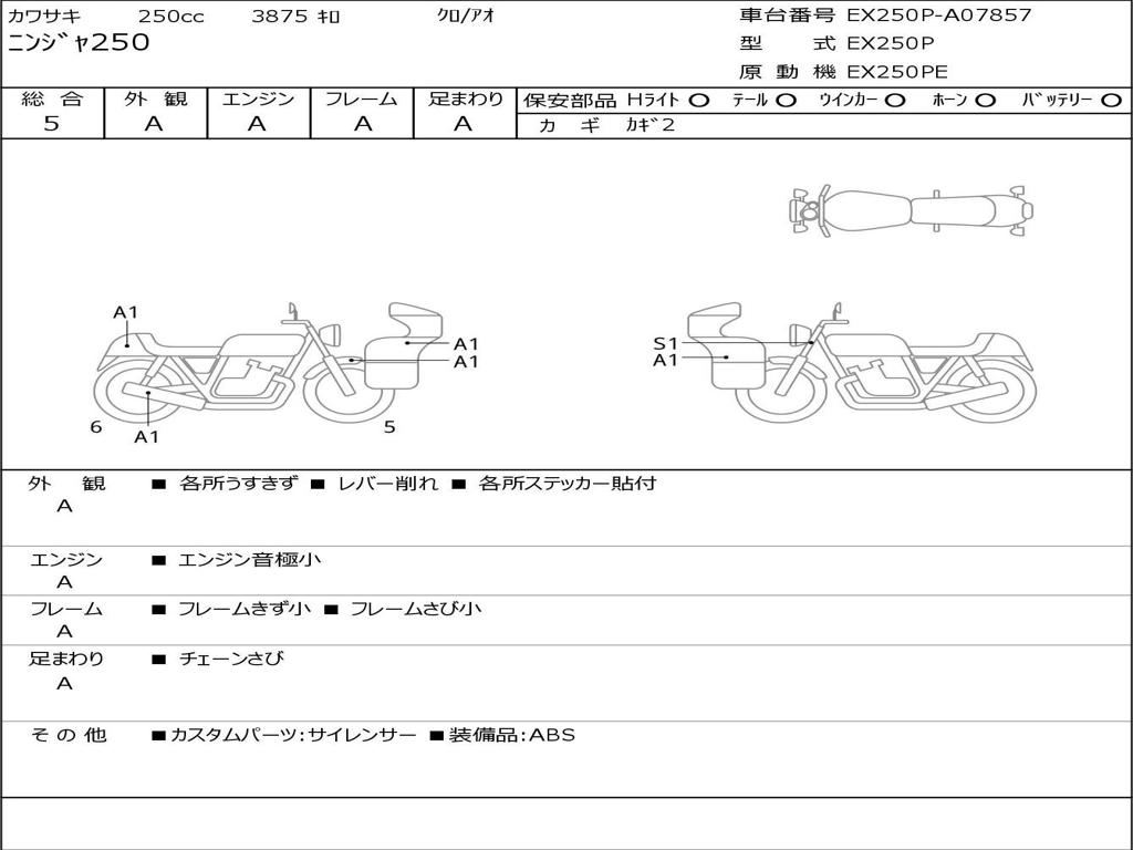 | Номер рамы / VIN | EX250P-A07857 |