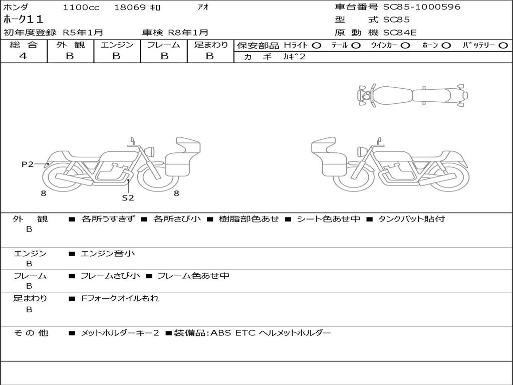 | Номер рамы / VIN | SC85-1000596 |