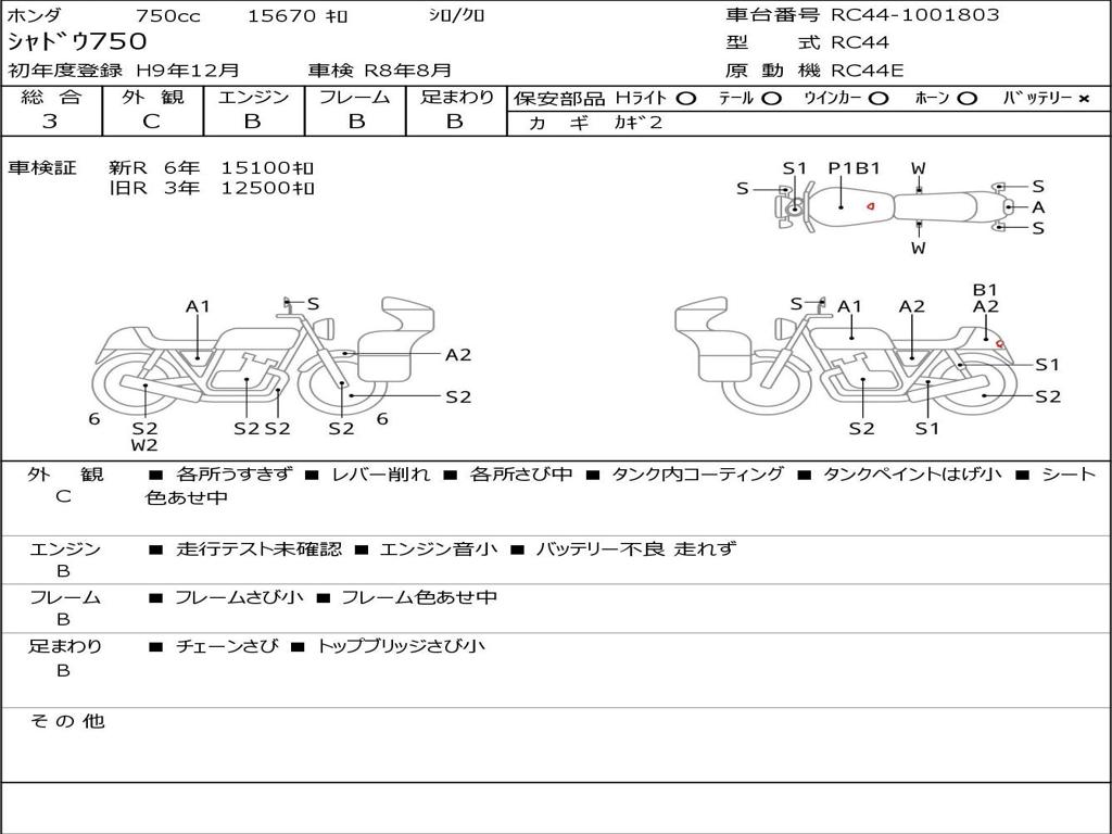 | Номер рамы / VIN | RC44-1001803 |