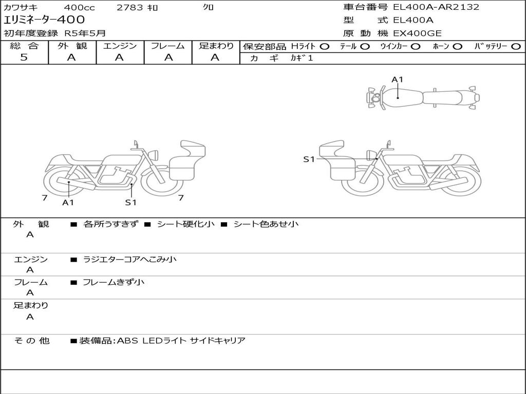 | Номер рамы / VIN | EL400A-AR2132 |