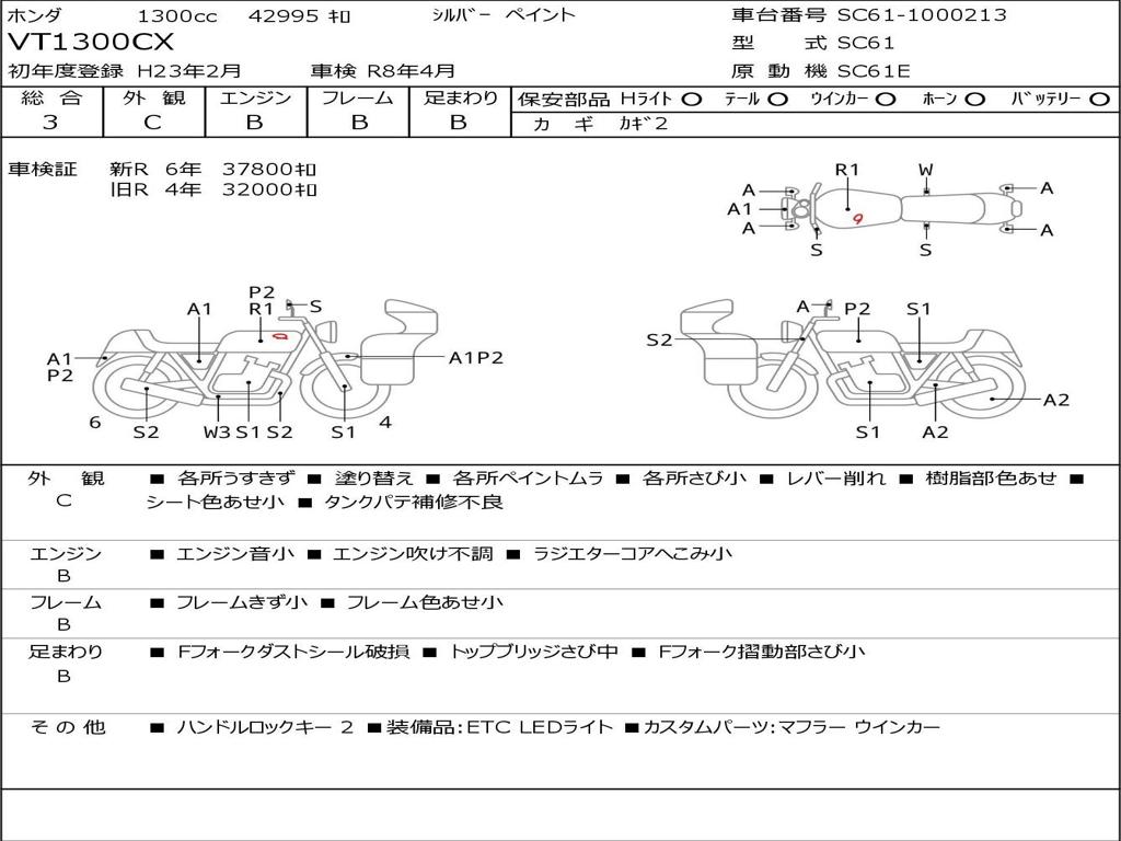 | Номер рамы / VIN | SC61-1000213 |