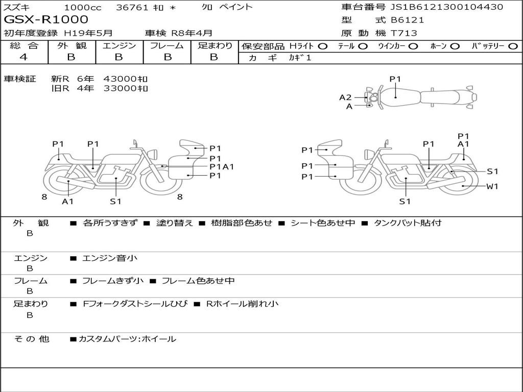 | Номер рамы / VIN | JS1B6121300104430 |