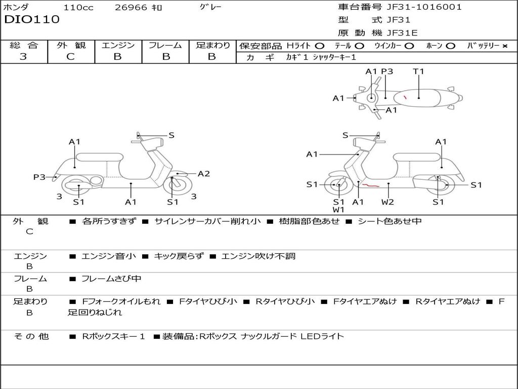 | Номер рамы / VIN | JF31-1016001 |