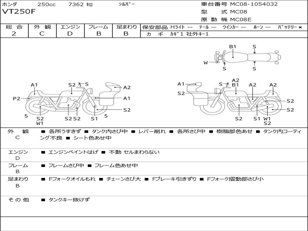 | Номер рамы / VIN | MC08-1054032 |