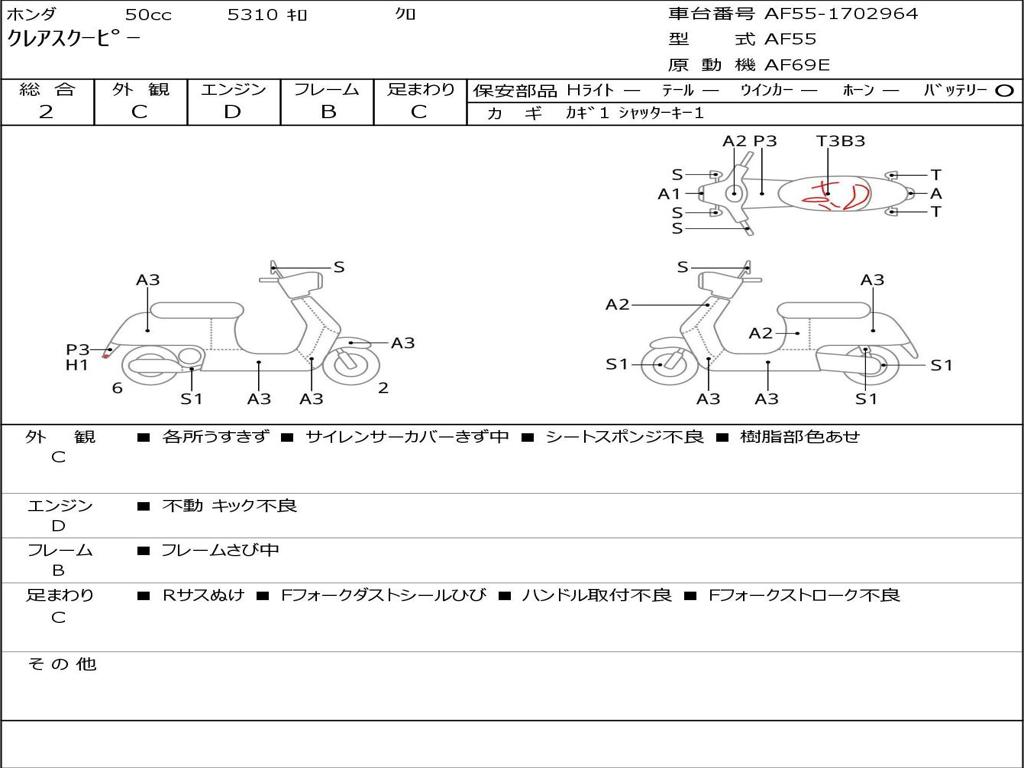 | Номер рамы / VIN | AF55-1702964 |