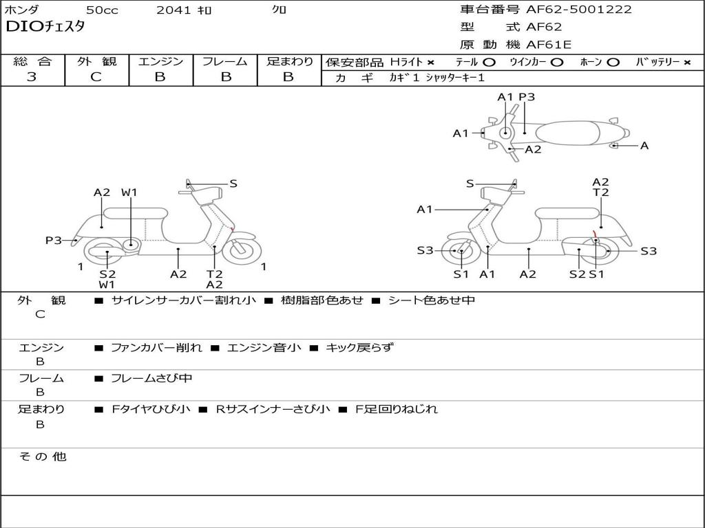 | Номер рамы / VIN | AF62-5001222 |