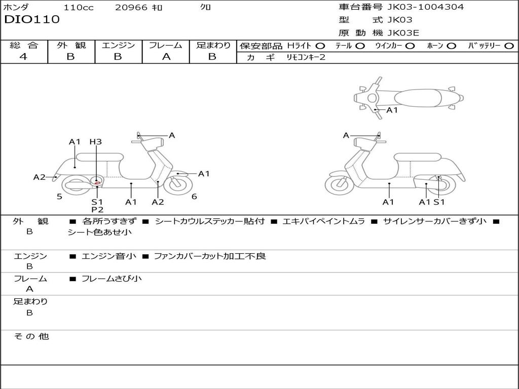 | Номер рамы / VIN | JK03-1004304 |