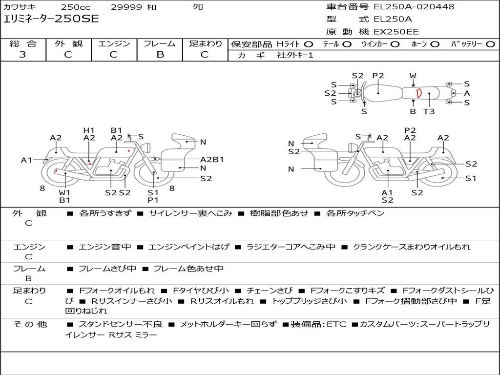| Номер рамы / VIN | EL250A-020448 |