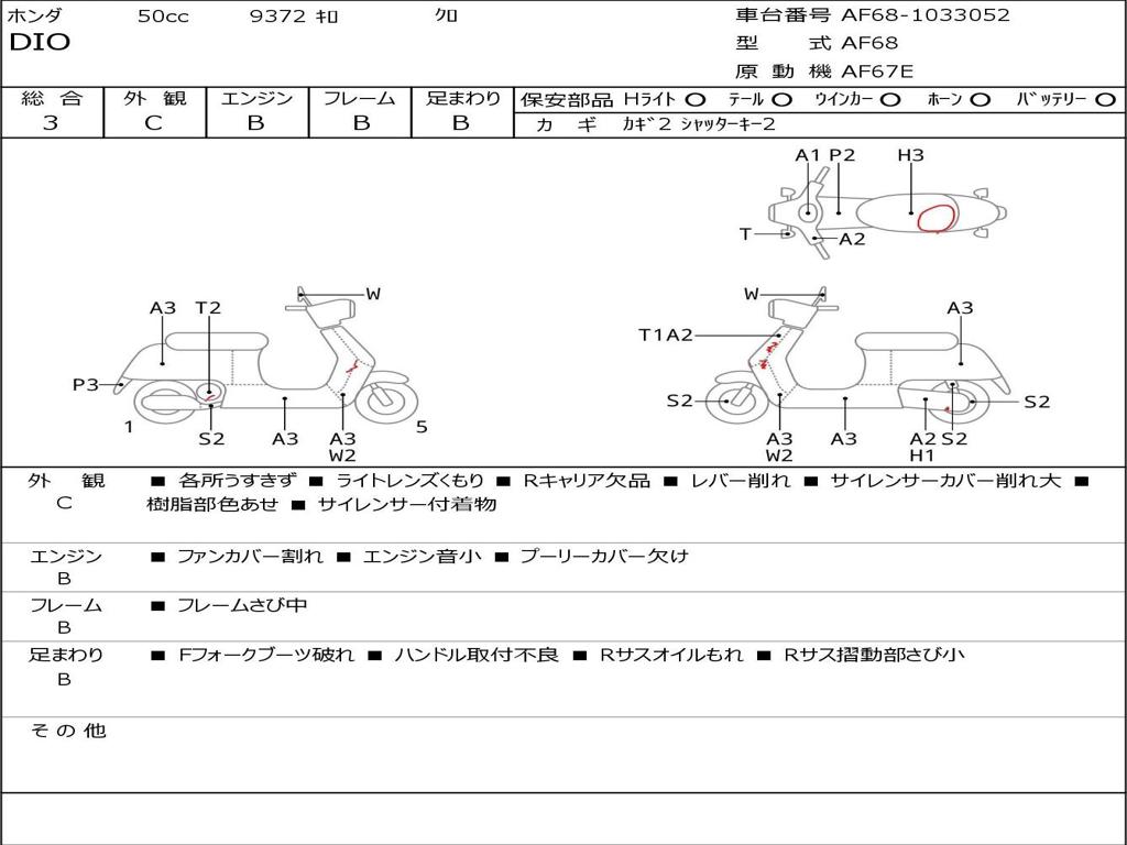 | Номер рамы / VIN | AF68-1033052 |