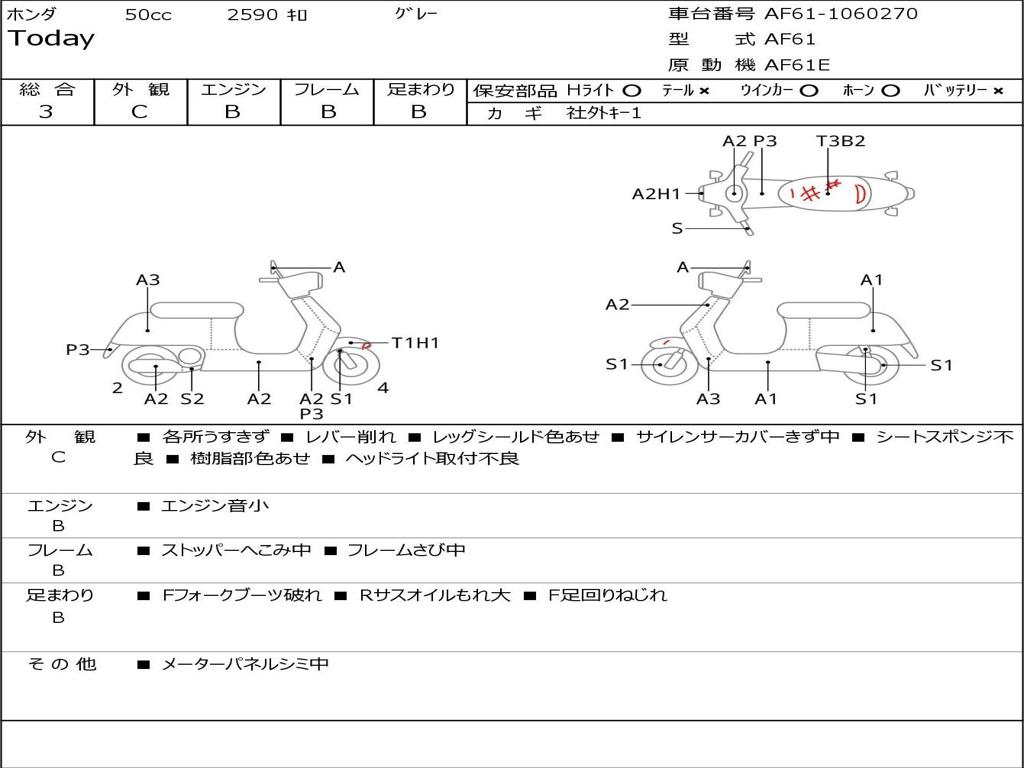 | Номер рамы / VIN | AF61-1060270 |