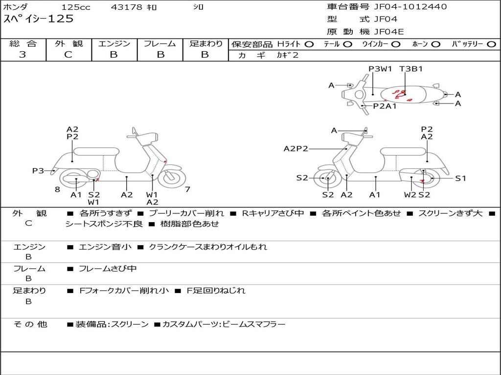 | Номер рамы / VIN | JF04-1012440 |