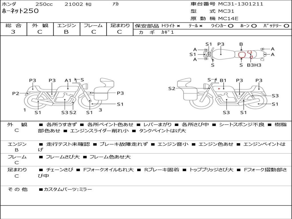 | Номер рамы / VIN | MC31-1301211 |