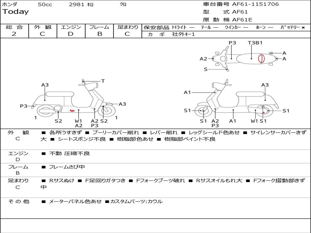 | Номер рамы / VIN | AF61-1151706 |