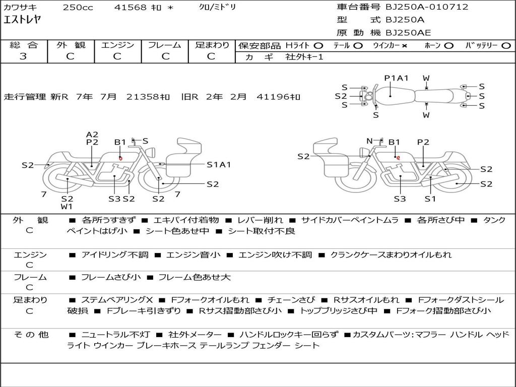 | Номер рамы / VIN | BJ250A-010712 |