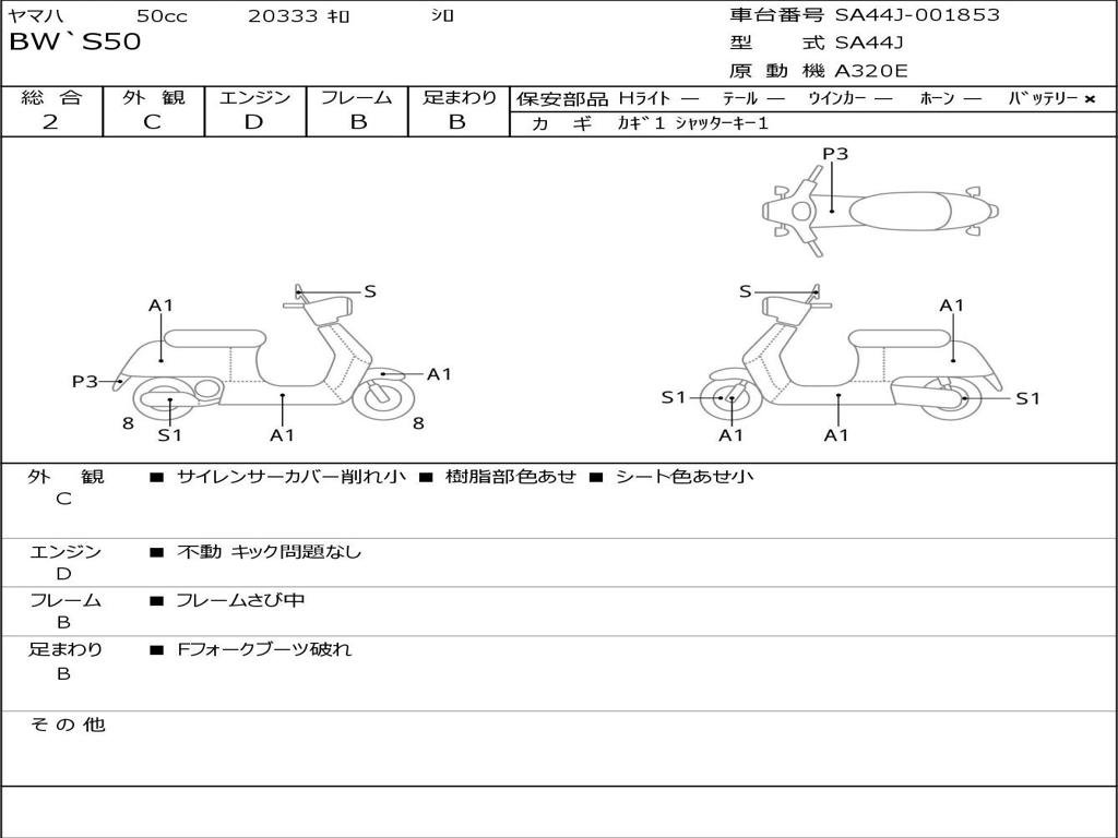 | Номер рамы / VIN | SA44J-001853 |