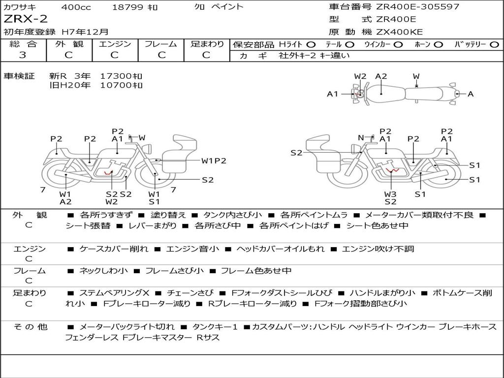 | Номер рамы / VIN | ZR400E-305597 |