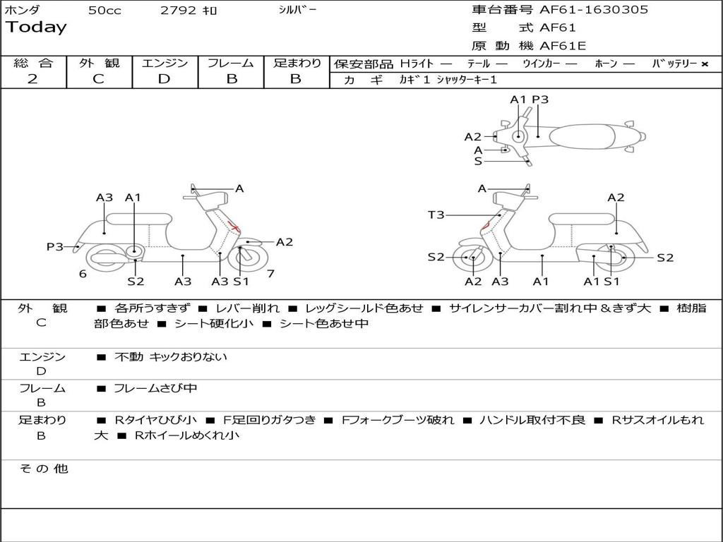 | Номер рамы / VIN | AF61-1630305 |