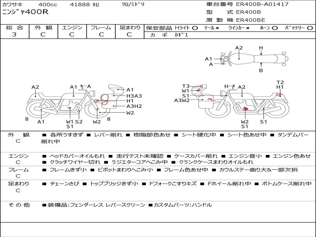 | Номер рамы / VIN | ER400B-A01417 |