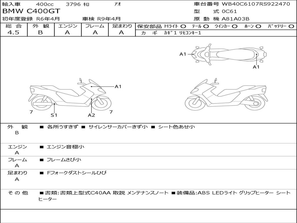 | Номер рамы / VIN | WB40C6107RS922470 |