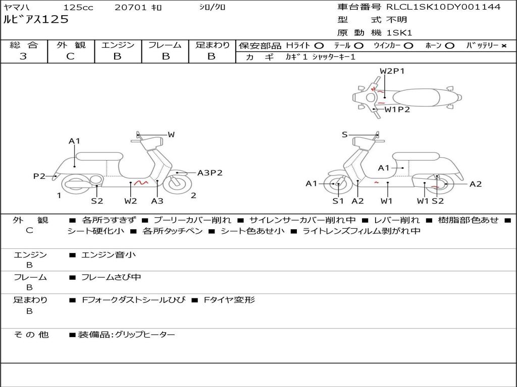 | Номер рамы / VIN | RLCL1SK10DY001144 |