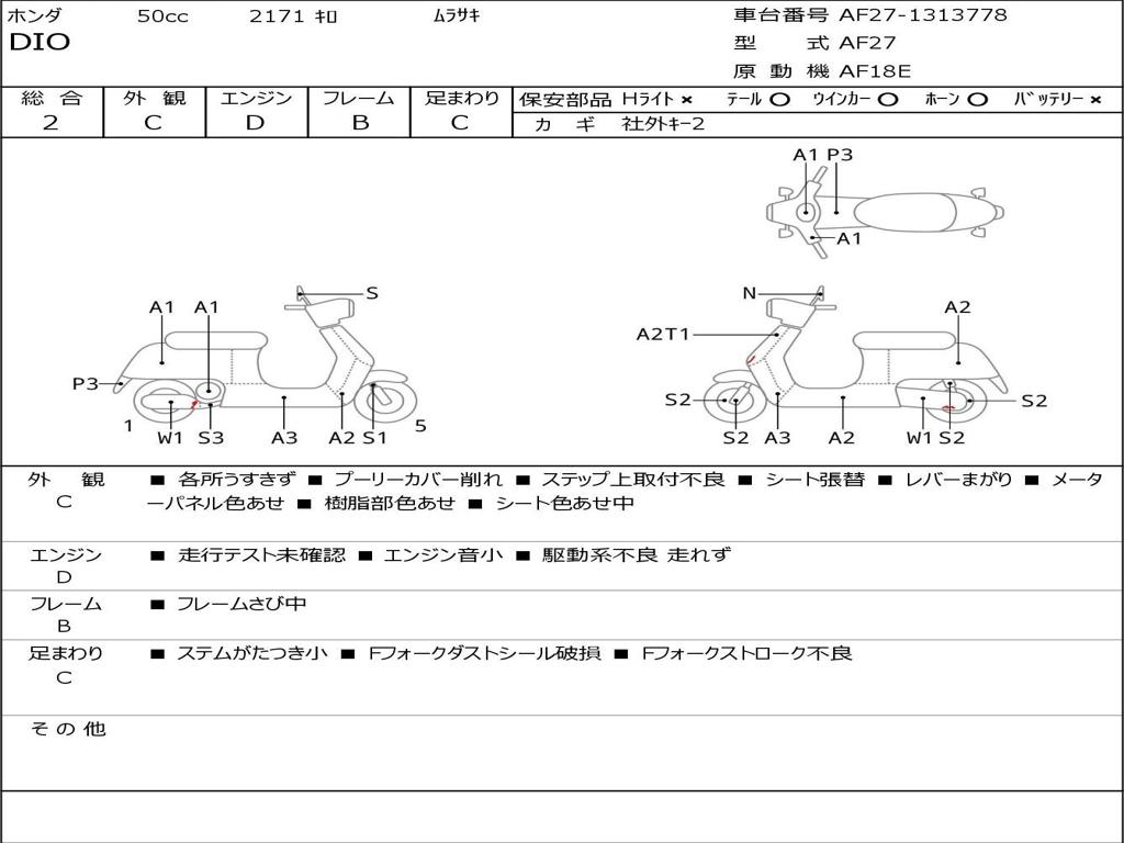 | Номер рамы / VIN | AF27-1313778 |