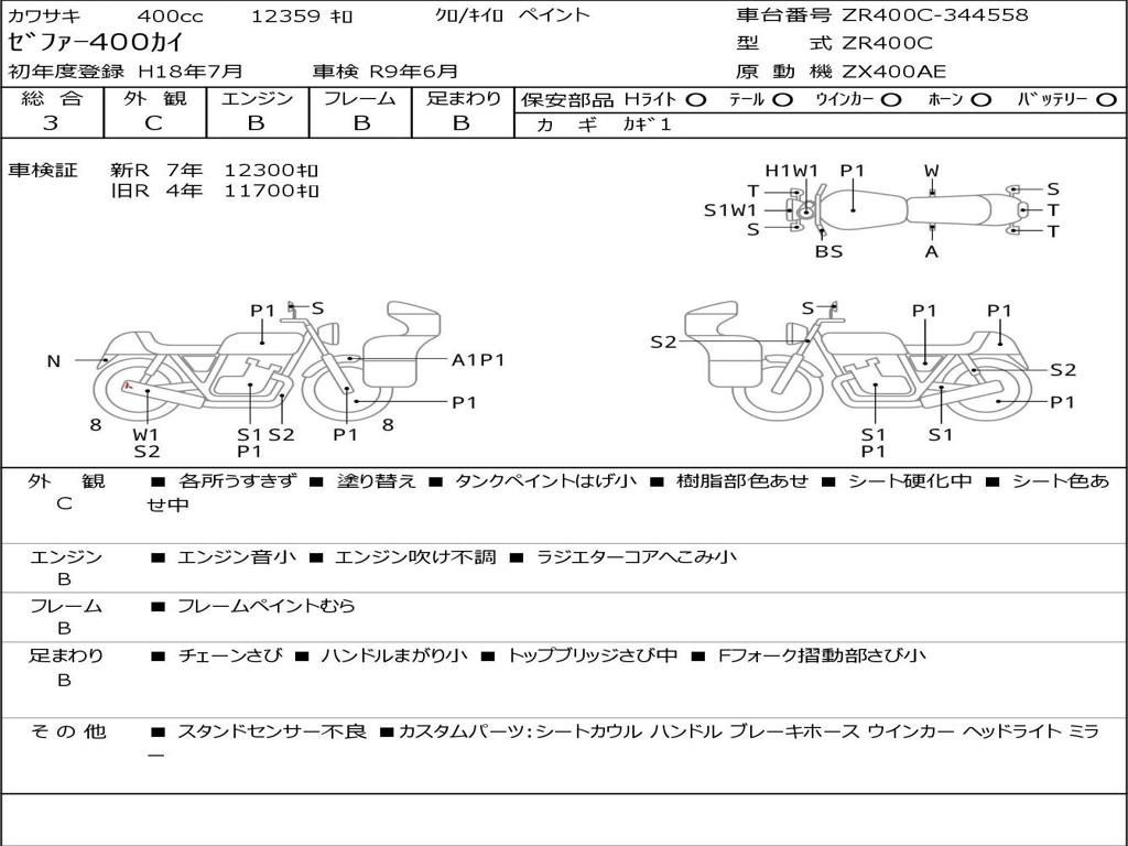 | Номер рамы / VIN | ZR400C-344558 |