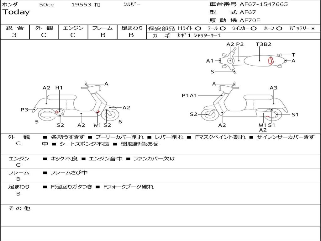 | Номер рамы / VIN | AF67-1547665 |