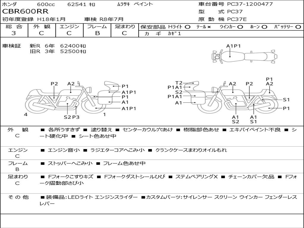 | Номер рамы / VIN | PC37-1200477 |