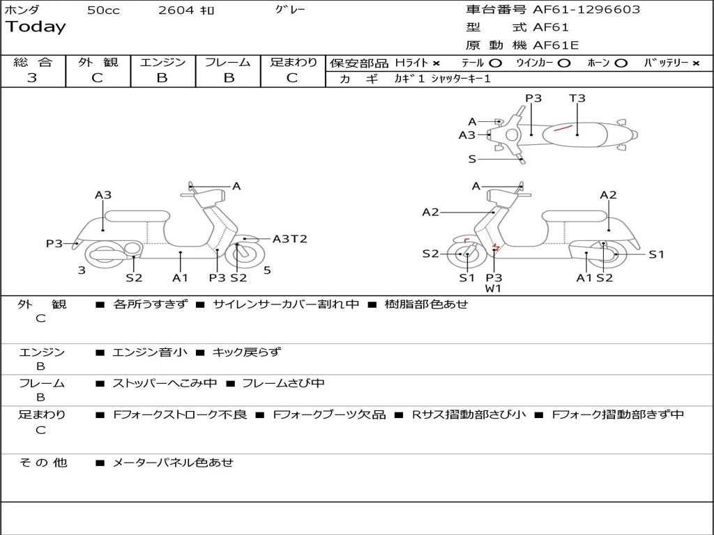 | Номер рамы / VIN | AF61-1296603 |