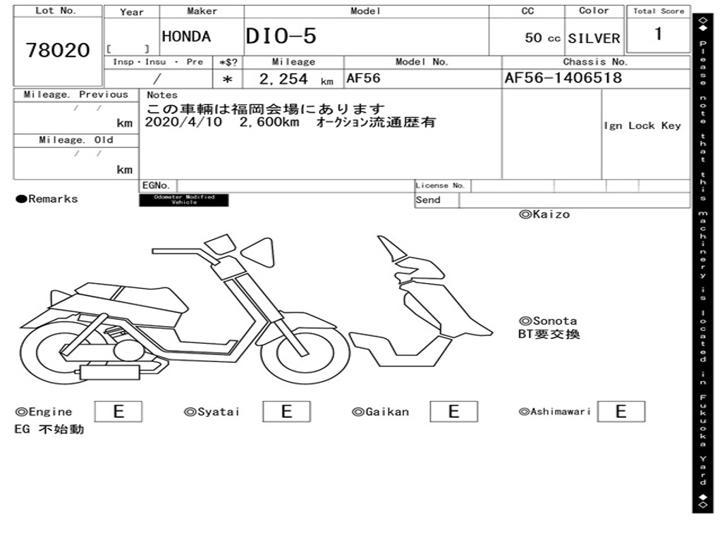 | Номер рамы / VIN | AF56-1406518 |