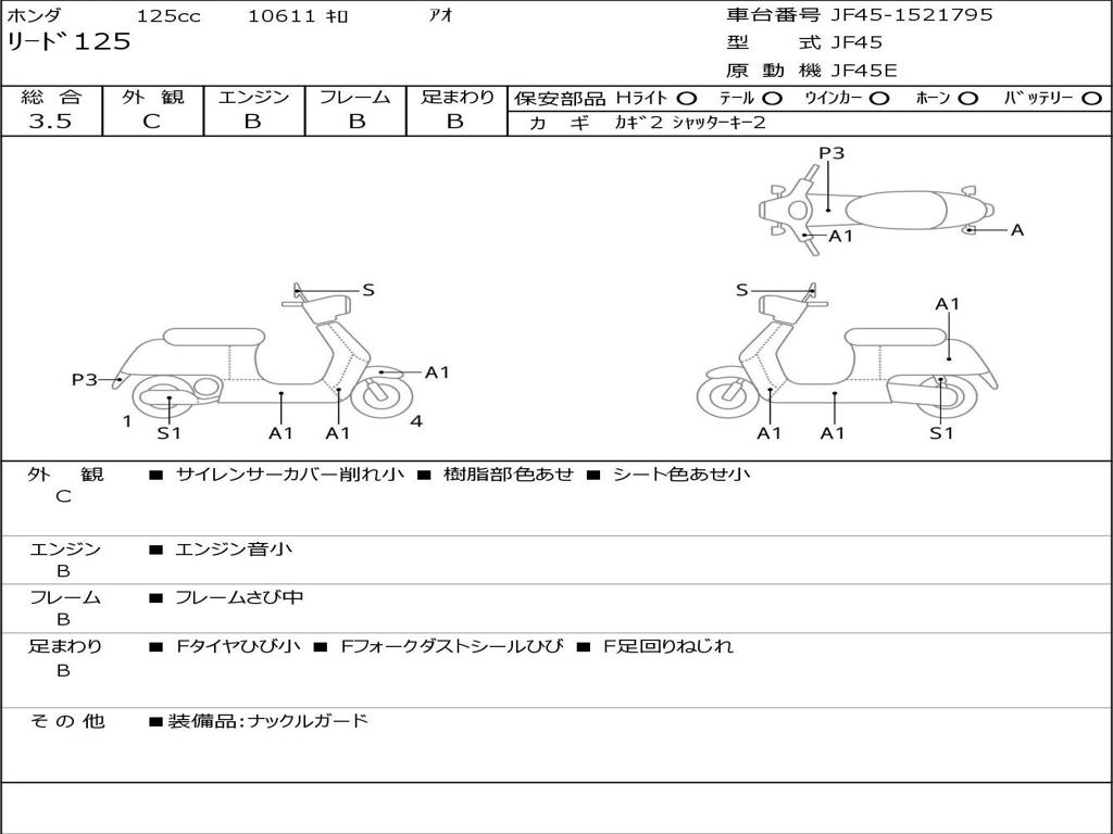 | Номер рамы / VIN | JF45-1521795 |