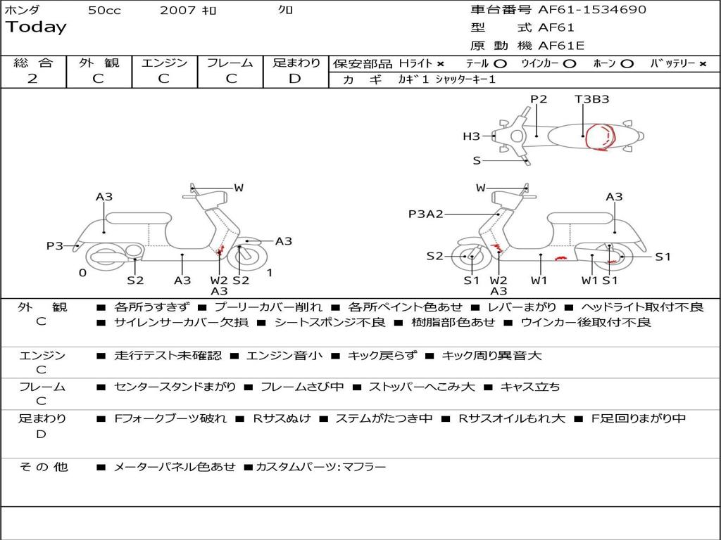 | Номер рамы / VIN | AF61-1534690 |