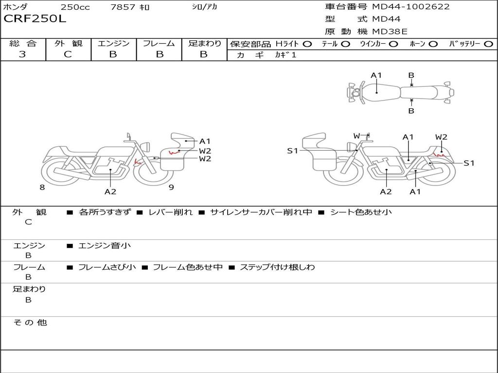 | Номер рамы / VIN | MD44-1002622 |