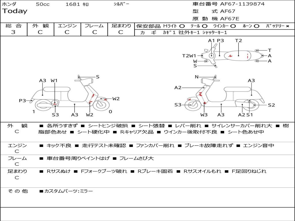 | Номер рамы / VIN | AF67-1139874 |