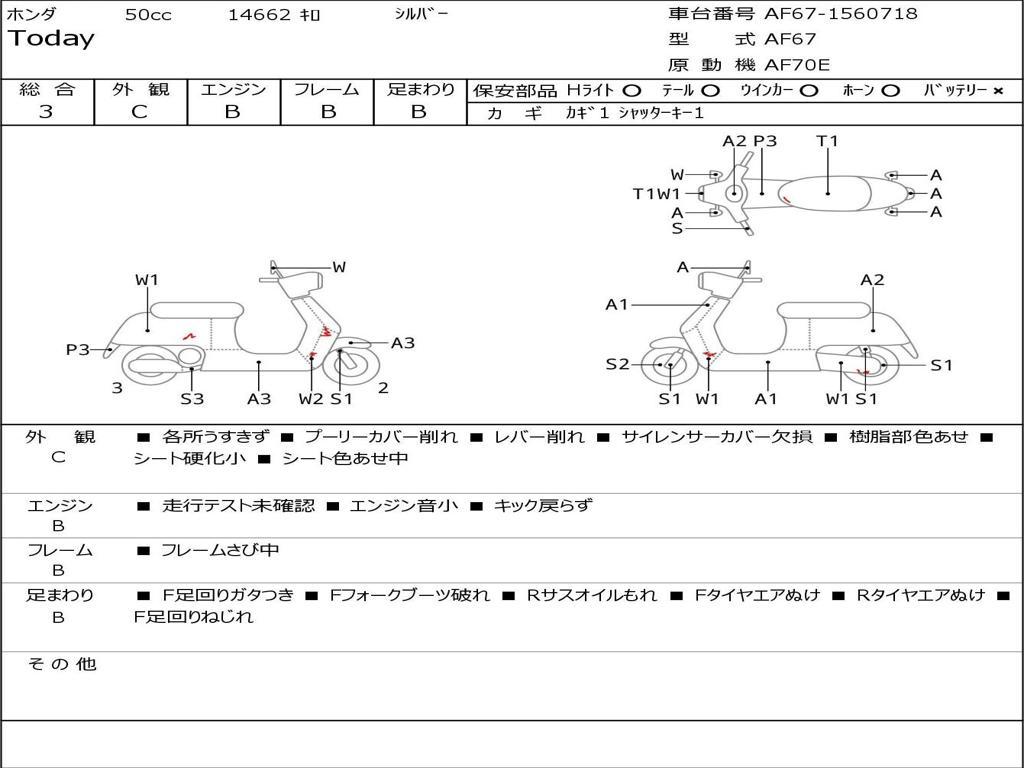 | Номер рамы / VIN | AF67-1560718 |