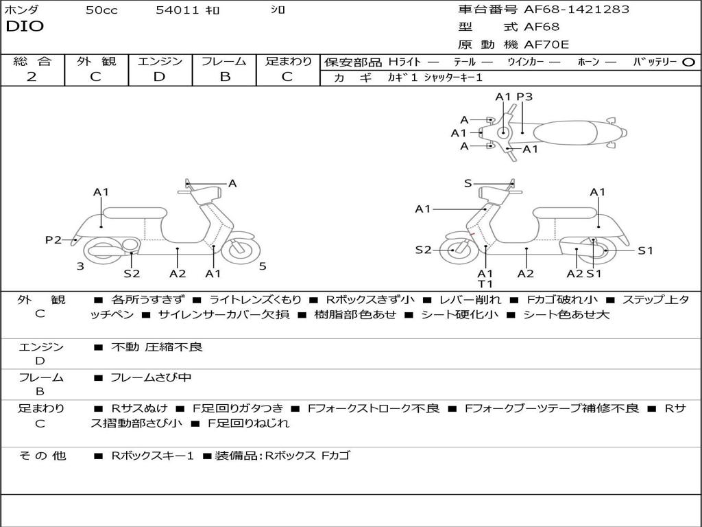 | Номер рамы / VIN | AF68-1421283 |